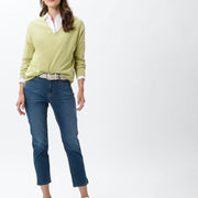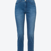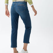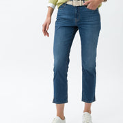Blue Planet staat bij BRAX voor duurzame en authentieke producten, die voldoen aan de sociale en ecologische normen. Net als deze verkorte five-pocket-jeans in Style Mary S. Dankzij Ultralight Denim is deze broek bijzonder licht en sterk en onderscheidt hij zich door een goede pasvorm. Net zo perfect is het draagcomfort en de zachte touch, want de slim fit met smalle pijpen voor dames is uit een hoogwaardige katoenmix vervaardigd. De sportieve five-pocket-zakken ronden de look van deze broek af. Kleine zoomsplitten maken het verschil. Voor de zomerse look zorgen de frisse kleuren. Veelbelovende momenten voor ons en het milieu.Pasvorm: * Five pocket jeans * Damesbroek * Five pocket zakken * Sluiting: ritssluiting * Slim Fit * Smalle pijpen * Smalle pijpen onderaan * Korte lengte Materiaal: * Ultralight Denim * Blue Planet * Coloured Denim * Katoen: * Lyocell: uit cellulose bestaande vezel * Elastaan: hoogelastische vezel met meer bewegingsvrijheid * Elastomultiester: zeer elastische vezel met goede terugveereigenschappen * Lichte kwaliteit * Kleur- en vormbestendig * Comfortabel dankzij stretchaandeel * vVoelt zacht aan * Gemakkelijk te reinigen Details/Verwerking: * Hoogwaardige afwerking * Innovatief, duurzaam productieproces * Kleine zoomsplits * gecarboniseerd * Effen kleuren * Verzorgd sportief * Fraai label * Stijl: modern Maten: * Binnenbeenlengte bij maat 38: 68 cm * Voetwijdte bij maat 38: 32 cm * Lijfhoogte: Normaal * Pasvorm: Valt normaal * Ons model draagt maat 36 en is 177 cm lang