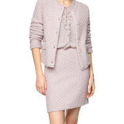 Elegante cardigan Knitted in Germany|Elegant vest in de stijl van een boucléjas. Bijzonder mooie details zijn de opgestikte zakken aan de voorkant en de knoopsluiting met bijpassende knopen. Het vest met paillettengaren wordt in Duitsland gebreid en ook afgewerkt. De verdere verwerking van de afzonderlijke delen vindt plaats in Europese partnerbedrijven. Het model is dus 'Knitted in Germany'.|Rechte snit|Knitted in Germany|Paillettengaren|Sierknopen|Het model is 179 cm lang en draagt maat N3/38.