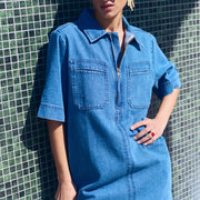 Jurken korte mouw blauw by-bar