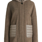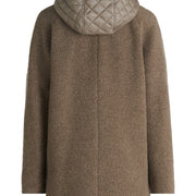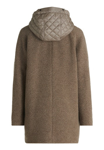 * Pasvorm: Recht * total length: 82 cm * Mouwlengte : Lange mouw * Capuchon: Met kap, Aangeknipt * Materiaaltype: Zachte stof * Zak: Opgestikte zakken * Sluiting: Knoopsluiting, Rits * Patroon: Effen * Wattering: 100% Polyester * Voering: 100% Polyester * Beleg: 100% Polyamide