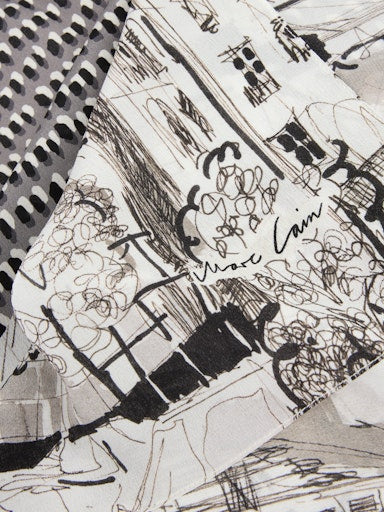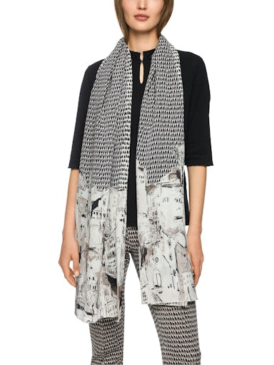 Zijden sjaal met printmix|Langwerpige sjaal van pure zijde met een exclusieve printmix van sprinkles en citymotief in artistieke look. Licht, elegant en veelzijdig te dragen – een stijlvol accessoire voor bijzondere looks met een creatieve twist.|Langwerpige vorm|Printmix|Zacht glanzende look|Koel aanvoelend|Lengte: 200 cm / Breedte: 65 cm