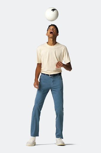 Chinos i en meget elastisk moderne mikrostruktur med den innovative ACTIVE Flex-linning. Førsteklasses håndværk med moderne pasform. Velegnet på kontoret og ved sportslige fritidsaktiviteter. Større bevægelsesfrihed takket være enestående fleksibilitet. Disse chinos er af økologisk bomuld med Tencel™-andel og er åndbare, temperaturkompenserende, hud- og allergivenlige, de krøller ikke og holder faconen. 100 % klimaneutral, FAIR og ansvarligt produceret i Europa.