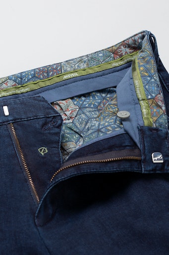 Deze denim combineert draagcomfort met elegantie. Door de toevoeging van TENCEL™ krijgt het biologische katoen verschillende eigenschappen. Het is temperatuurregulerend, ademend, vochtregulerend, kreukarm, duurzaam en hypoallergeen. De perfecte pasvorm en de speciale ronde tailleband zorgen voor comfort. Met de super-stretchkwaliteit is bewegingsvrijheid gegarandeerd. Details zoals de kleurrijke geweven voering en het verborgen veiligheidszakje voor het opbergen van geld en creditcards dragen bij aan het bijzondere karakter van een MEYER-broek. 100% klimaatneutraal, FAIR en verantwoord in Europa geproduceerd!