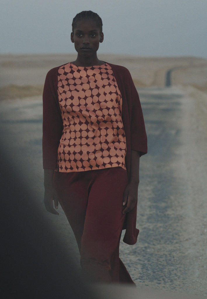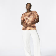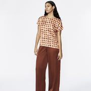 Waan je helemaal Xandres in deze unieke blouse met in-house ontworpen dot print. Een leuk detail: Xandres werd handgeschreven rond de bollen.