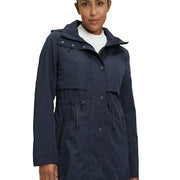 * Pasvorm: Licht getailleerd * total length: 90 cm * Mouwen: Lange mouw * Capuchon: Afneembaar, met tunnelkoord, met contrastkleurige binnenkant * Kraag: Opstaande kraag * Zak: Rits * Sluiting: Rits, Sluiting, Drukknopen * Patroon: Effen * Voering: 52% Polyamide, 48% Polyester | Voering2: 100% Polyester * Beleg: 100% Polyester