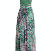 * Pasvorm: Uitlopend * total length: 157 cm * length from the waist: 115 cm * Fijn materiaal: Tule * Mouwen: Mouwloos * Halslijn: Rimpeling * Lengte: Maxi * Schouderbanden: Verstelbare schouder * Sluiting: Rits * Patroon: Floraal * Voering: 100% Polyester * Beleg: 100% Polyamide