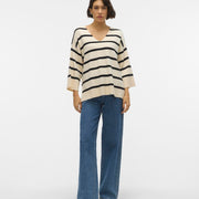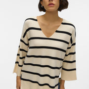 Geen enkele garderobe is compleet zonder je favoriete trui, en dit zou wel eens je nieuwe favoriet kunnen worden. De perfecte manier om warm, stijlvol én comfortabel te blijven. Pure perfectie!. - Type product : Gebreide pullover - Neck : V-Hals - Mouw : 3/4 mouwen - Mouwen : Verlaagde schoudernaden