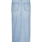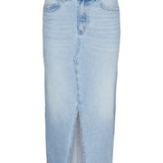 - Type product : Denim rok - Sluiting : Gulp met rits - Zakken : Muntzakje, Voorzak, Achterzakken - Taille : High waist - Details : Split aan de voorkant - Wassing/Afwerking : Stonewash voor een faded, versleten look
